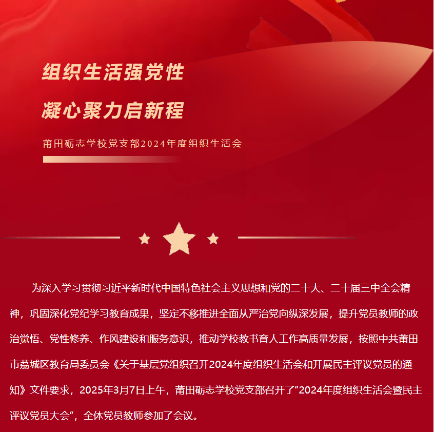 【党性锤炼】组织生活强党性 凝心聚力启新程——莆田砺志学校党支部2024年度组织生活会