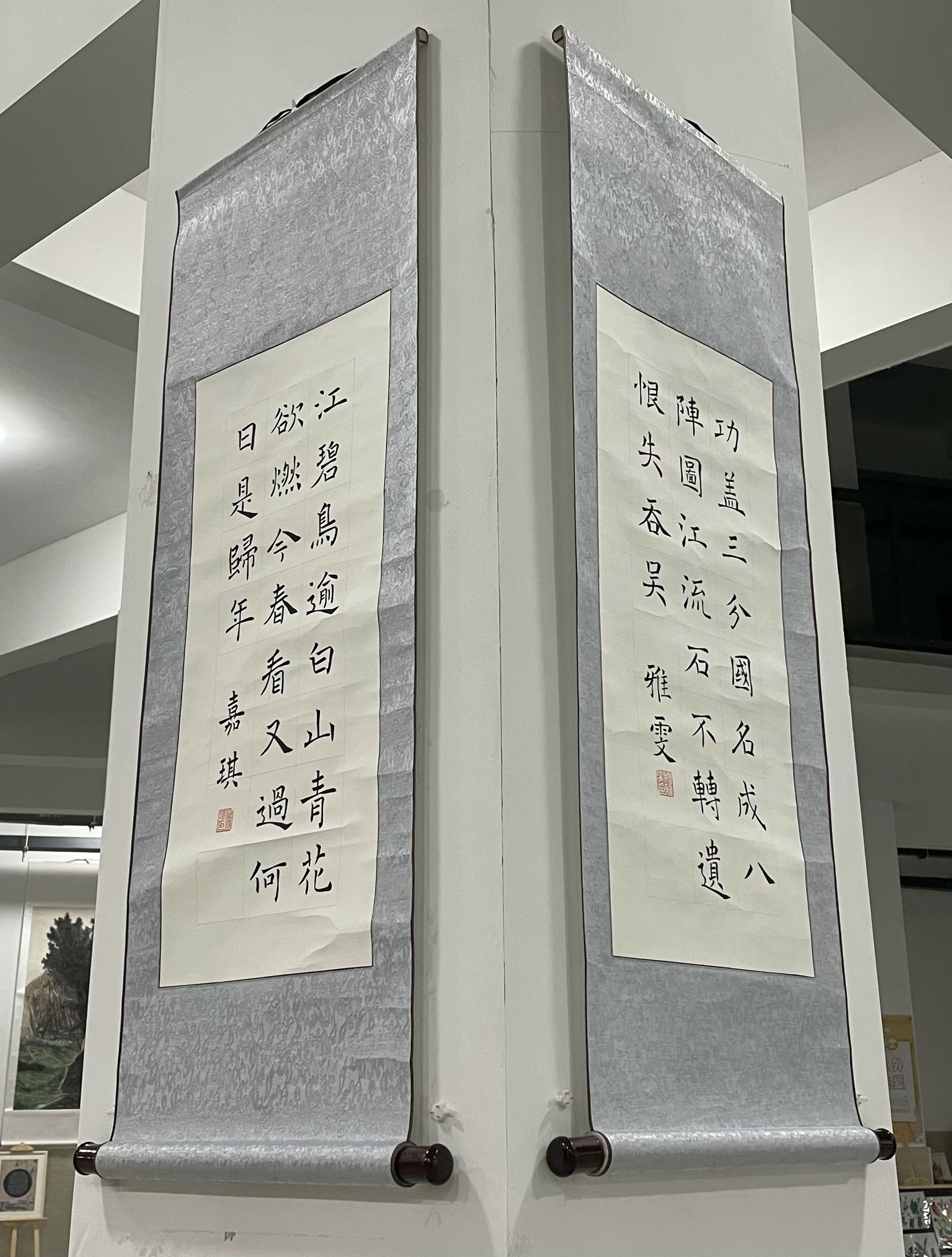 本次艺术展共有100多件作品参与展示,涵盖素描、水粉、水彩、硬笔书法、毛笔书法、漫画、剪纸等多种形式,内容包括静物写生、人像、风景、诗词书法、卡通动漫等多种题材,形式多样,各具创意。