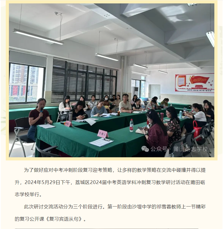 课堂观摩展风采,共研共思促成长——记荔城区2024届中考英语学科冲刺复习教学研讨活动