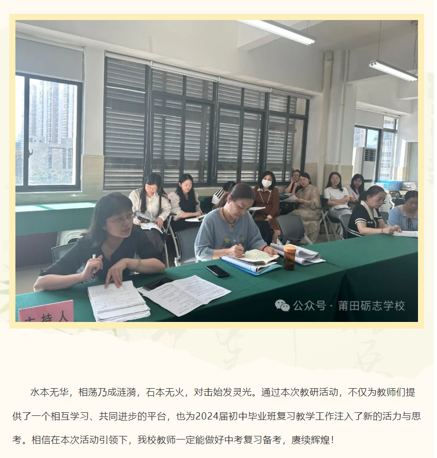 凝心聚力谋策略,携手攻坚赢中考——记荔城区2024年中考地理学科冲刺复习教研活动