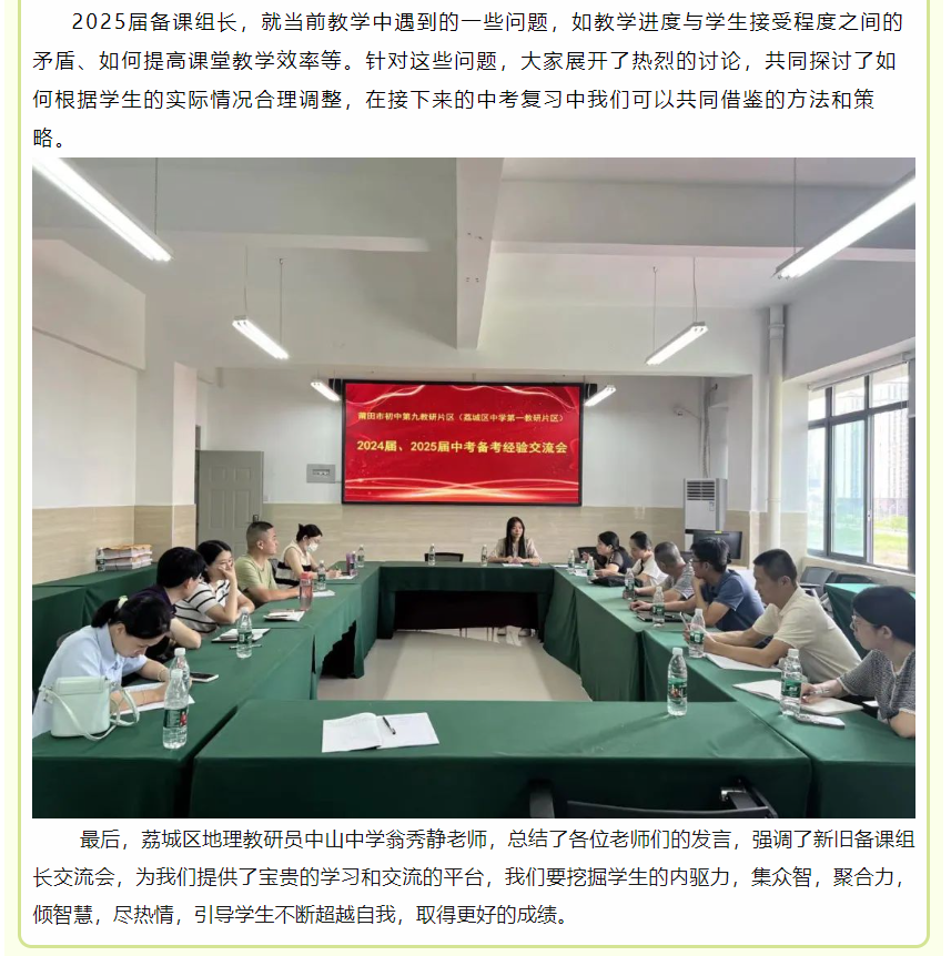 “薪火相传共成长,取长补短促提升”——2024届、2025届地理学科中考备考经验交流会