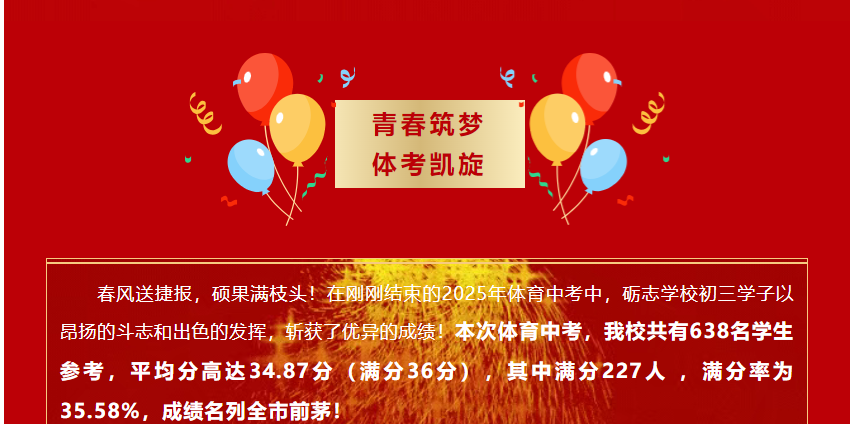 【砺志喜报】全市第二!砺志学校体育中考圆满收官