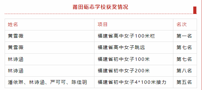 在8月10日-13日举办的2024年福建省青少年田径冠军赛暨中学生联赛中,共有来自全省140多所中学801名运动员参加,莆田砺志学校在没有招收体育特长生的情况下,通过学校体育老师的专业教导和学生的刻苦训练,以顽强的体育拼搏精神,过五关斩六将,最终取得优异成绩。
