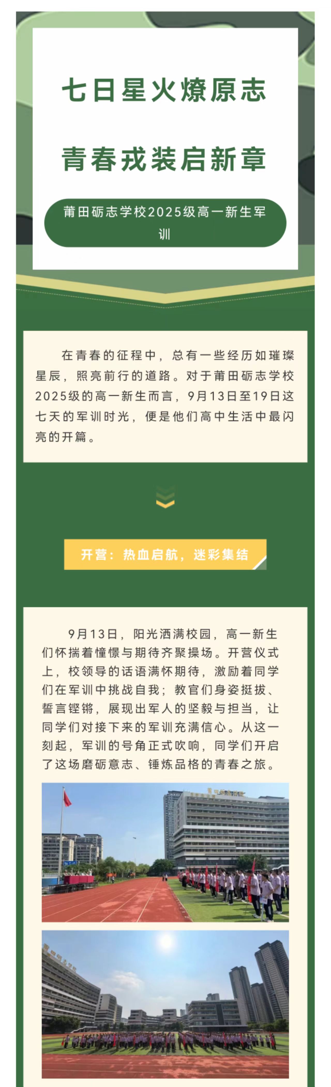 【砺志记事】“七日星火;燎原志,青春戎装启新章”——莆田砺志学校2025级高一新生军训