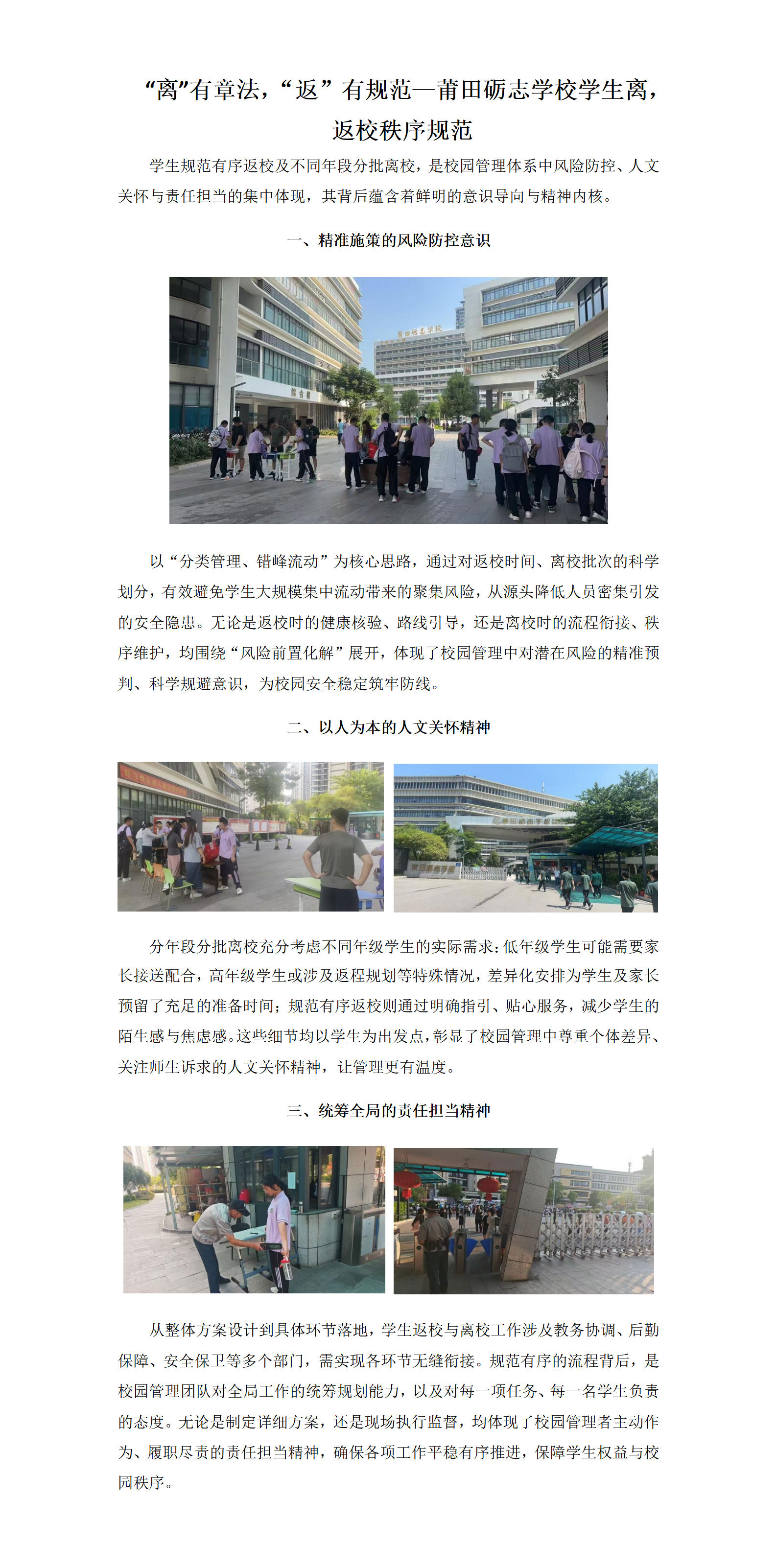 “离”有章法,“返”有规范—莆田砺志学校学生离,返校秩序规范