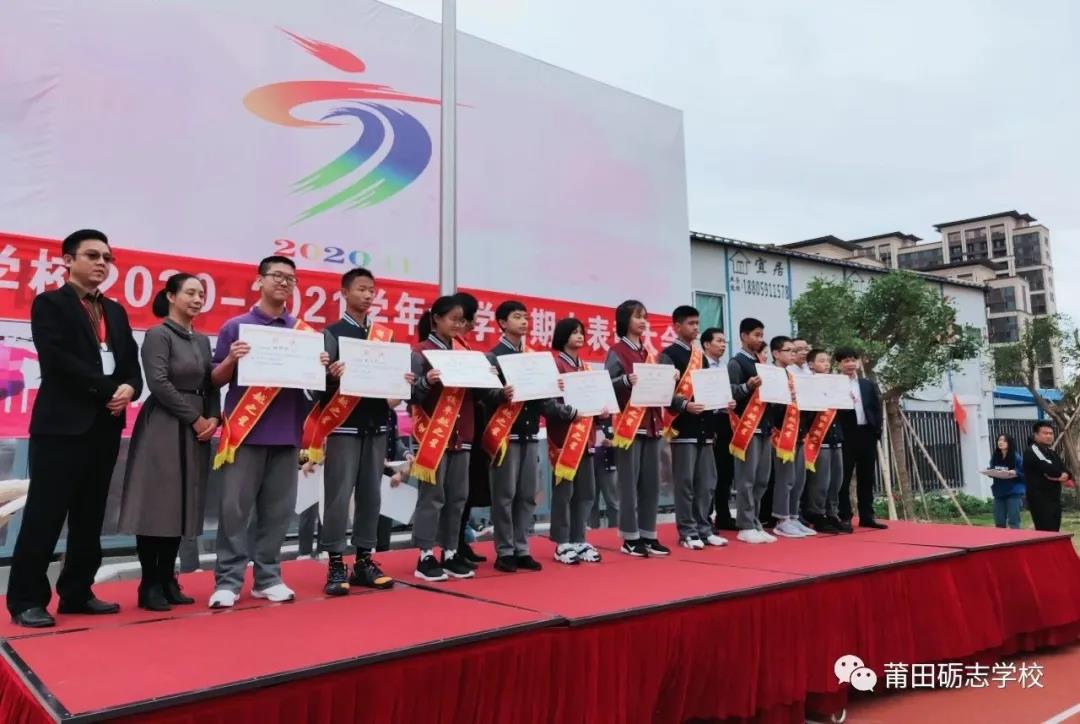 迎着明媚的阳光,怀着满腔的喜悦,莆田砺志学校2020—2021学年上学期期中表彰大会在学校操场隆重举行。