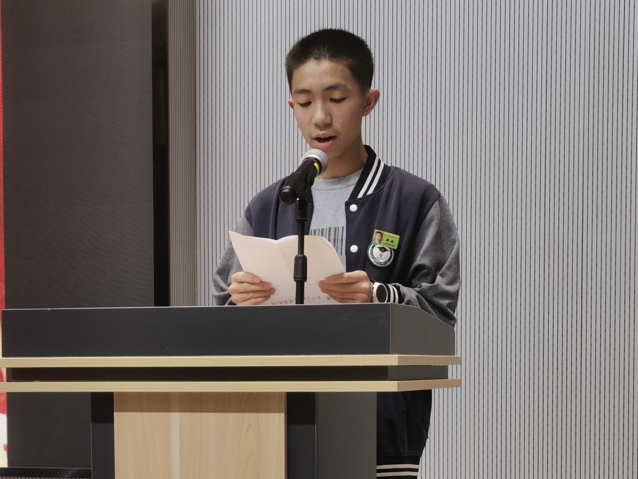 誓师会上,陈威同学作为优秀学生代表上台发言。陈威同学说:“三年前,我们带着美好的人生理想,跨进了莆田砺志的校园,在这里我们留下了负笈前行的背影,晨光匆匆的脚步,开始了一段逐梦的青春韶华。而此刻,距离我们收获梦想的时间,不过最后一百零七天。在这一百零七天里,我们要奋发图强,持之以恒。我们要爬沟越坎,点赞青春。我们要坚定执着,像女排一样,也许会一次次的跌倒,但仍然抬头仰望梦想,永不放弃。同学们,中考的战鼓已经擂响,我们别无选择。‘狭路相逢勇者胜’,此时不搏何时搏!我们要以高昂的斗志,百倍的信心,坚定的意志,扎实的基础,高超的技能,全身心地奋战中考,以优异的成绩向学校、家长、老师、社会交出一份满意的答卷,创砺志中考辉煌!”陈威同学的发言慷慨激昂,充满自信的话语振奋人心,展示着砺志学子阳光自信、积极向上的精神面貌!