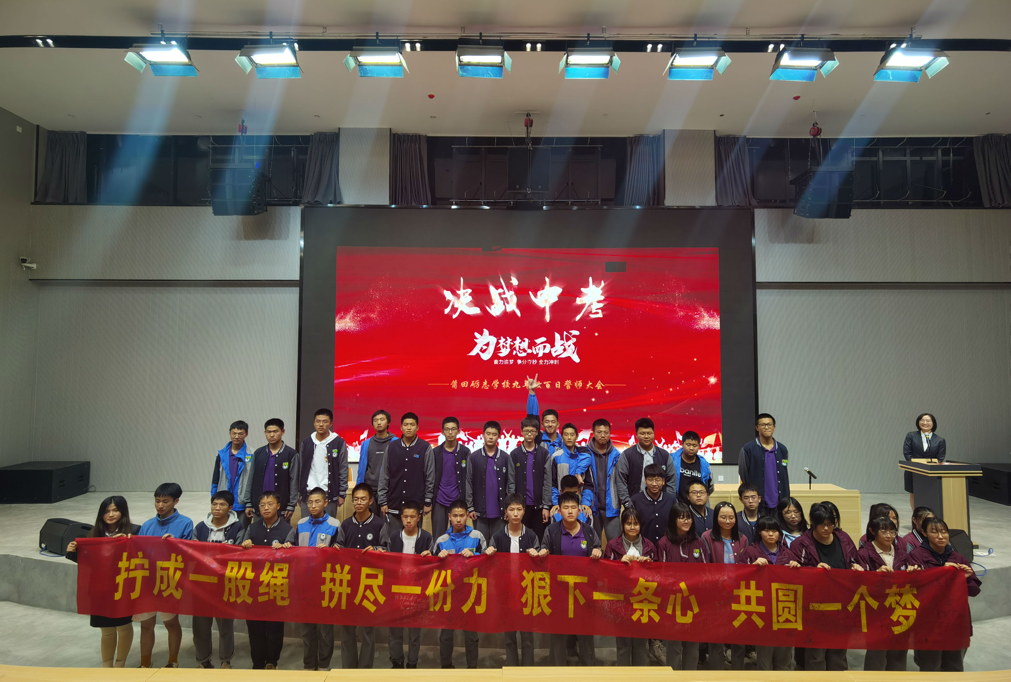 春天,是一个充满期待和盼望的季节,走过这个春天,九年级即将迎来人生一个重要的转折点——中考。3月9日,在这个距离中考仅剩百天的日子里,中考誓师大会在学校学术报告厅举行。学校卓校长、陈副校长等校领导以及全体九年级师生出席了中考誓师大会。
