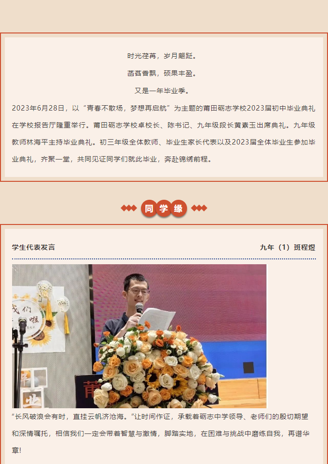 【砺志记事】“青春不散场,梦想再启航”——莆田砺志学校2023届初中毕业典礼