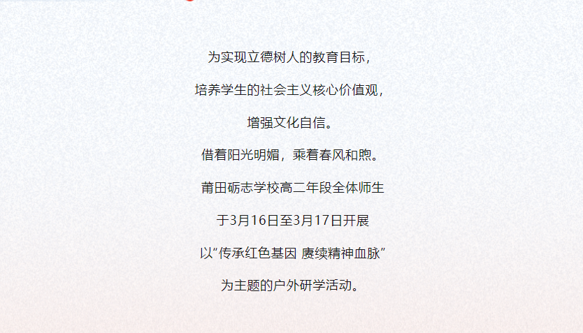 【砺志记事】“传承红色基因 赓续精神血脉”——莆田砺志学校高二年段研学活动