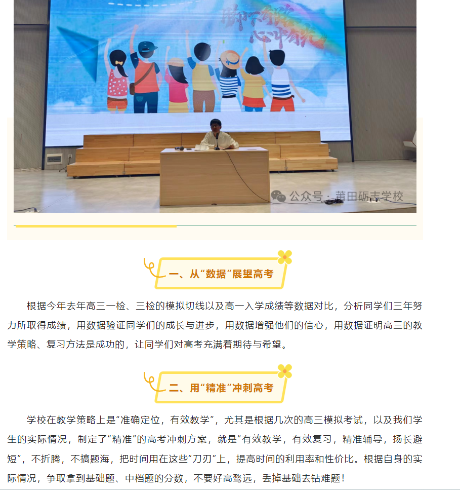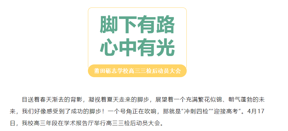 【砺志记事】脚下有路,心中有光——莆田砺志学校高三三检后动员大会
