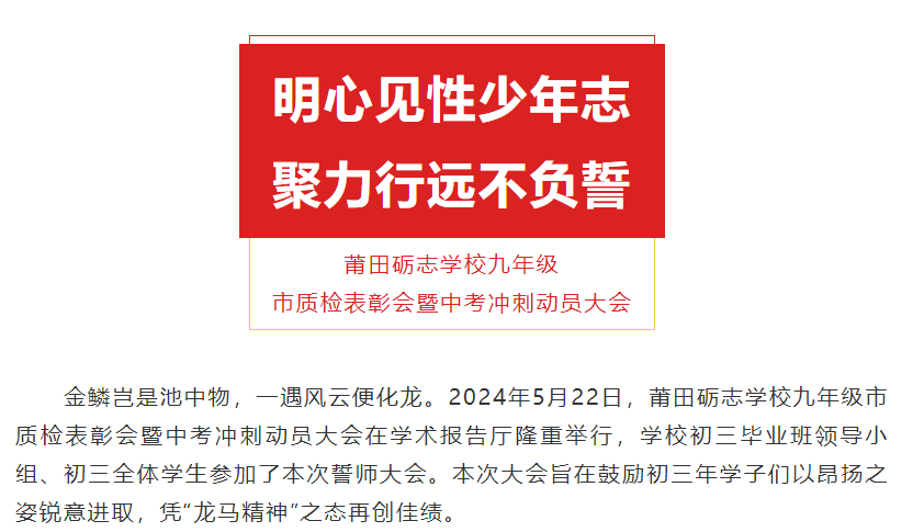 【砺志记事】明心见性少年志,聚力行远不负誓——莆田砺志学校九年级市质检表彰会暨中考冲刺动员大会