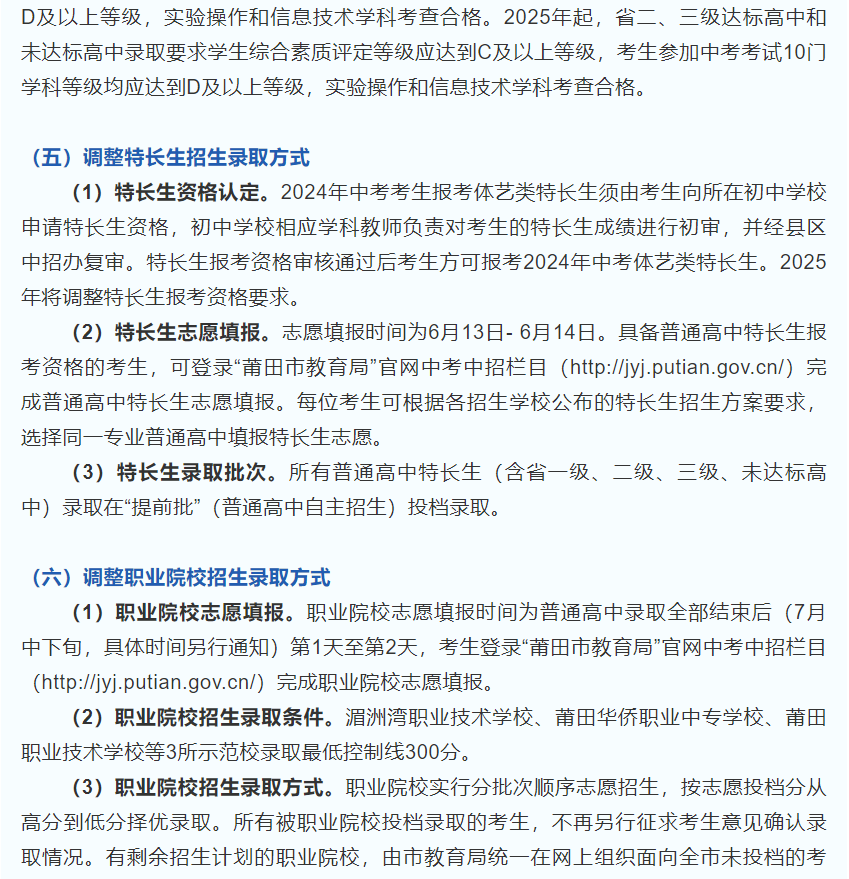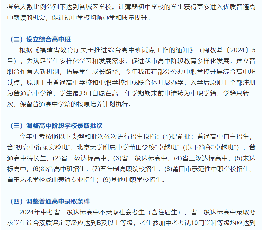 【转载莆田教育微门户网站】权威发布!莆田市2024年中考中招有这些变动→
