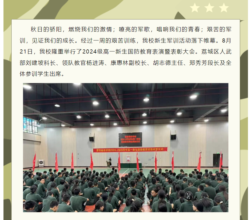 【砺志记事】“军训燃壮志,青春正起航”——莆田砺志学校2024级高一新生国防教育表演暨表彰大会