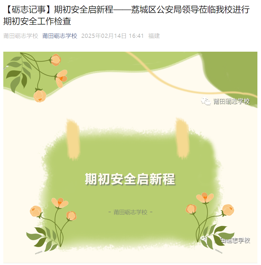 【砺志记事】期初安全启新程——荔城区公安局领导莅临我校进行期初安全工作检查