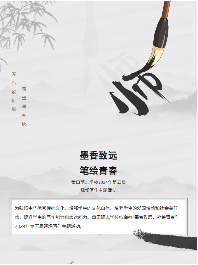 【砺志记事】“墨香致远,笔绘青春”——莆田砺志学校2024年第五届现场写作主题活动