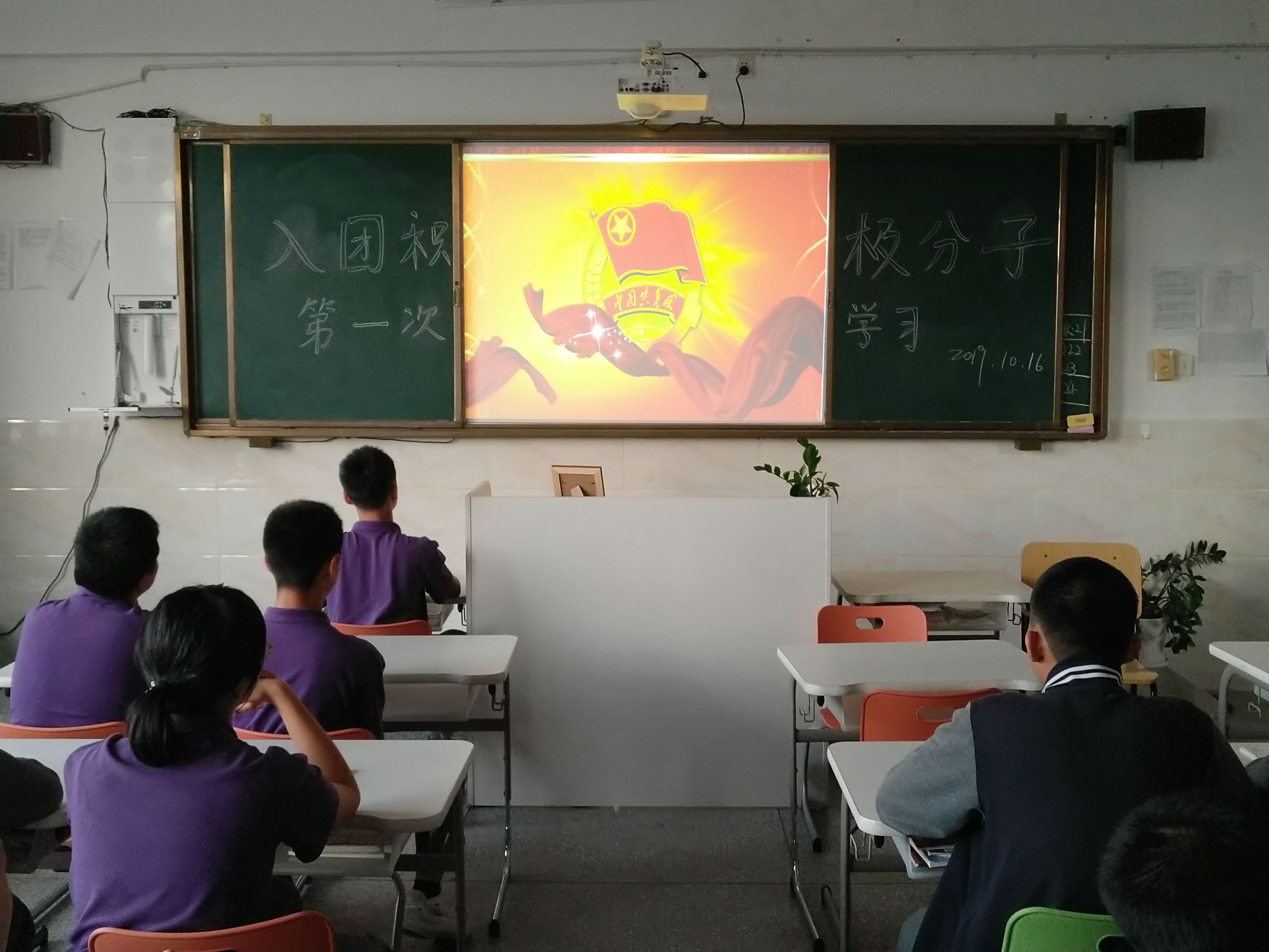 我校为培养新一批团员,分别于10月11日周五下午,在图书馆四楼开展九年级入团积极分子的第一次学习与在10月16日周三下午,在七年3班教室里开展八年级入团积极分子的第一次学习。由团委组织入团积极分子学习团章团史,了解共青团的光辉历史。通过学习,入团积极分子纷纷表示对共青团有了更深的认识,要起带头作用,刻苦学习,做有担当的人,努力成为合格的后备军。