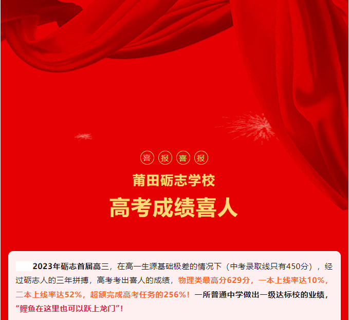 欢迎报考莆田砺志学校高中部——“鲤鱼在这里也可以跃上龙门”!